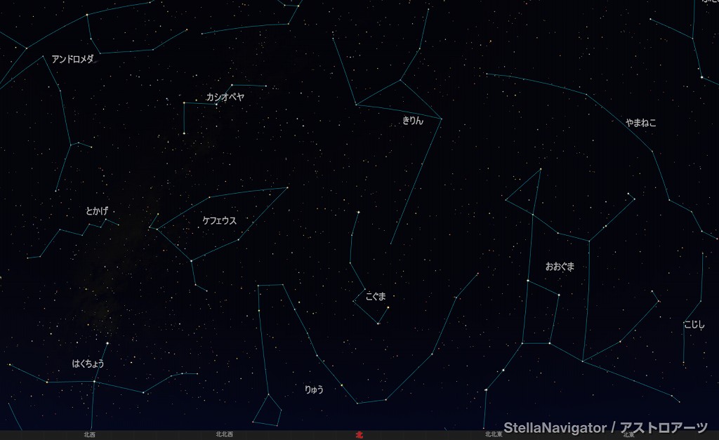 ![]() 2025年1月の星空の様子 (黄線:黄道、赤線:天の赤道) 南の空 上旬21時ごろ 中旬20時ごろ 下旬19時ごろ (以下、同様) ![]() 南〜天頂 ![]() 東の空 ![]() 北の空 ![]() 西の空 ![]() 星座早見 (南が下) ![]() 2025年1月の星空の様子 (黄線:黄道、赤線:天の赤道) 南の空 上旬1時ごろ 中旬0時ごろ 下旬23時ごろ (以下、同様) ![]() 南〜天頂 ![]() 東の空 ![]() 北の空 ![]() 西の空 ![]() 星座早見 (南が下) |