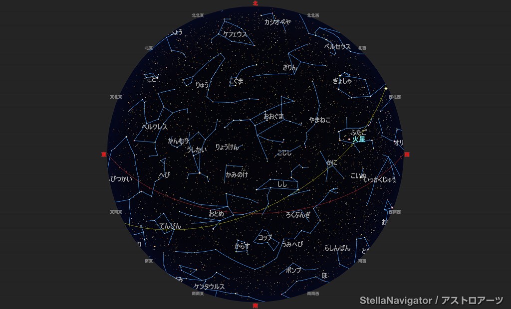 | このページの星図、シミュレーション図は、 株式会社アストロアーツのステラナビゲータを使用しています。 |
