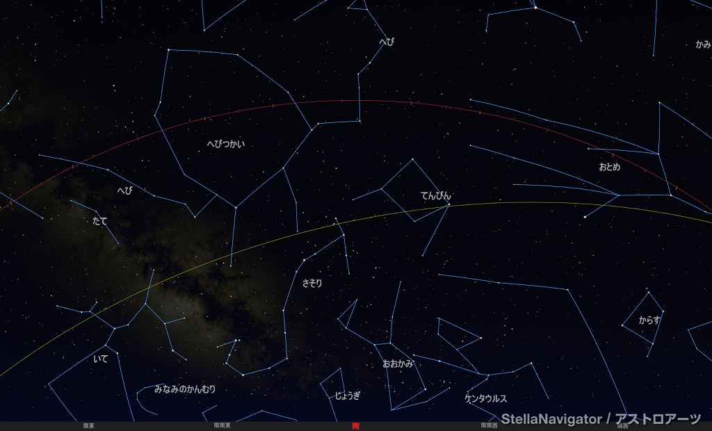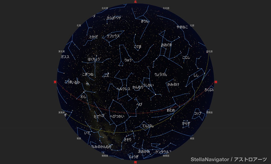 ![]() 2025年5月の星空の様子 (黄線:黄道、赤線:天の赤道) 南の空 上旬21時ごろ 中旬20時ごろ 下旬19時ごろ (以下、同様) ![]() 南〜天頂 ![]() 東の空 ![]() 北の空 ![]() 西の空 ![]() 星座早見 (南が下) ![]() 2025年5月の星空の様子 (黄線:黄道、赤線:天の赤道) 南の空 上旬1時ごろ 中旬0時ごろ 下旬23時ごろ (以下、同様) ![]() 南〜天頂 ![]() 東の空 ![]() 北の空 ![]() 西の空 ![]() 星座早見 (南が下) |