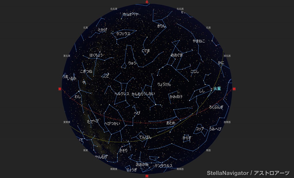 | このページの星図、シミュレーション図は、 株式会社アストロアーツのステラナビゲータを使用しています。 |