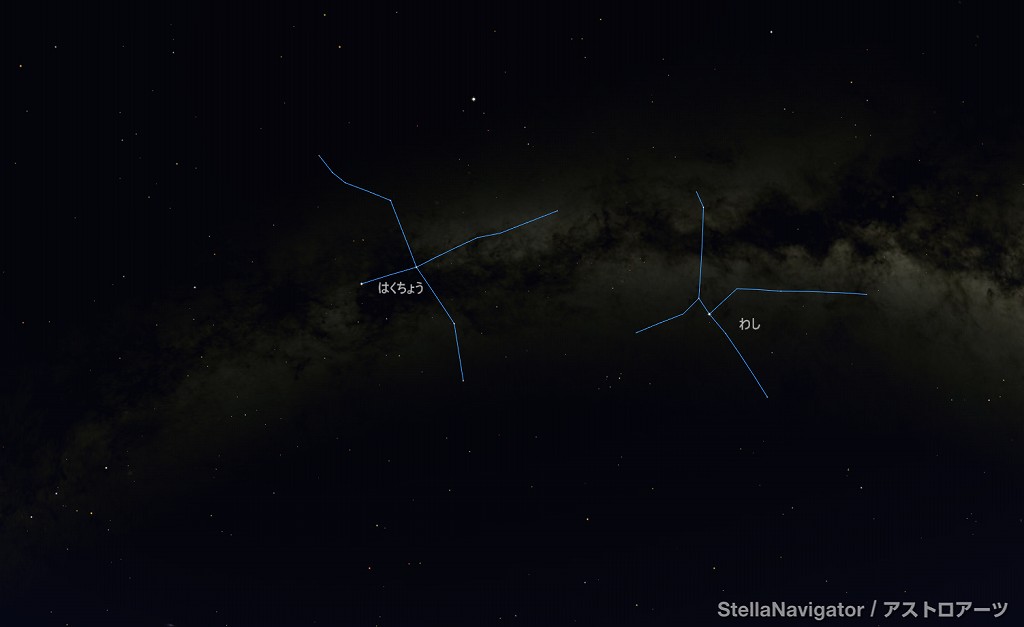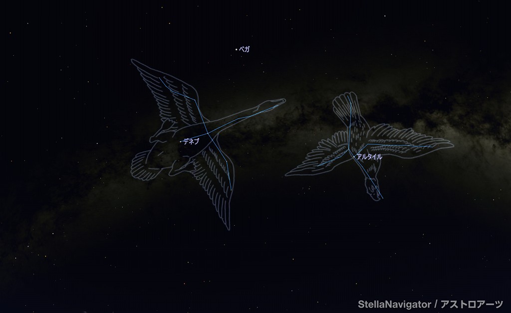 ![]() 2025年7月下旬21時ごろの東の空。 身体を東に向けて、そのまま見上げた時のイメージ。 ![]() はくちょう座デネブ、 わし座アルタイル、 こと座ベガ 夏の大三角形 ![]() 白鳥と大鷲が どちらもゼウスの化身だと思うと、 また違った感じがしてきます。 |