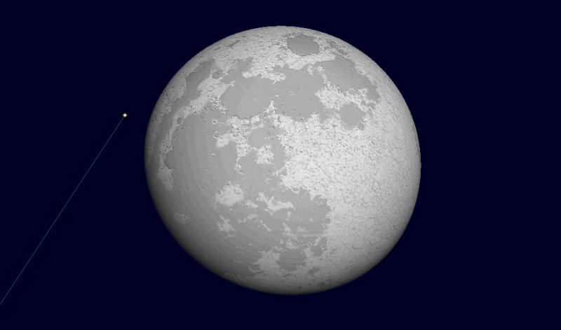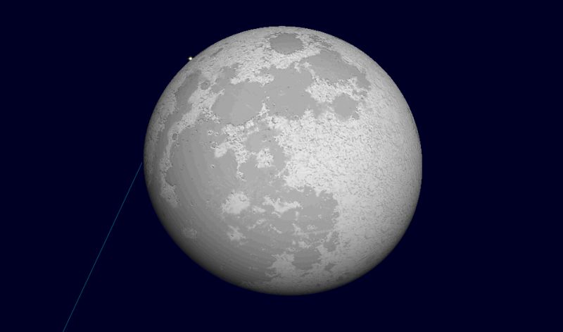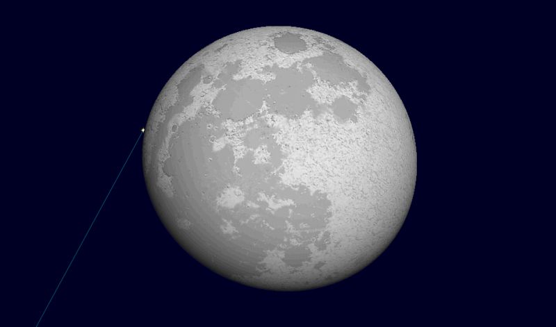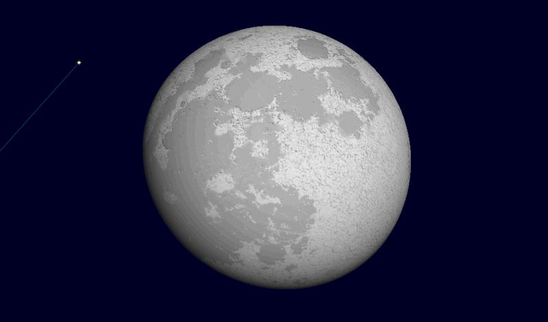 ![]() 2006年4月14日未明2時30分ごろの南西の空。 (13日の深夜となります。) この図だとスピカが月に隠れているように見えますけど、 残念ながら、星食とはなりません。 ![]() スピカと満月のアップです。 視野円は2度なので、 いかにスピカと月が接近しているのかがお分かりいただけるでしょう。 |