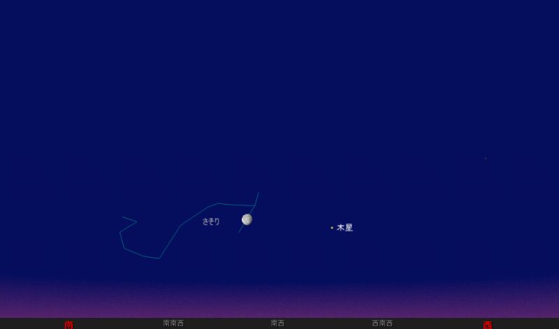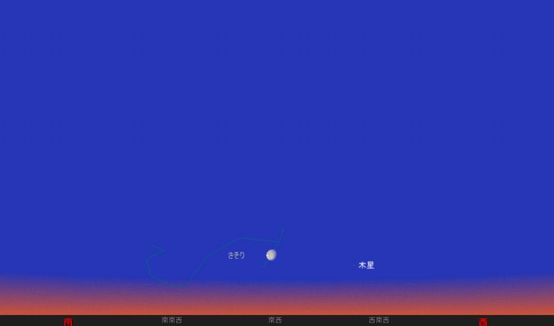 ![]() 2006年4月17日早朝5時15分ごろの南西の空。 これは東京での様子となりますけど、 5時すぎで、もうこんなに明るいんです。。。 ![]() 同5時15分の鹿児島市での様子です。 まだ、ギリギリ薄明がはじまったころですね。 ![]() 鹿児島市における、 さそり座π星の潜入時間は5時19分。 この後、どんどん空が明るくなる同時に、 月そのものが西に沈んでしまうので、 π星の出現を観測することは出来ません。 |