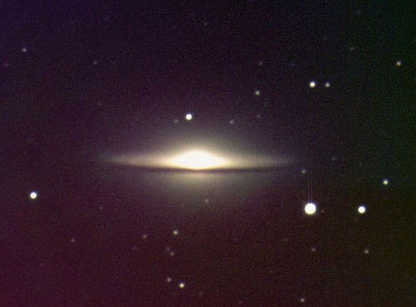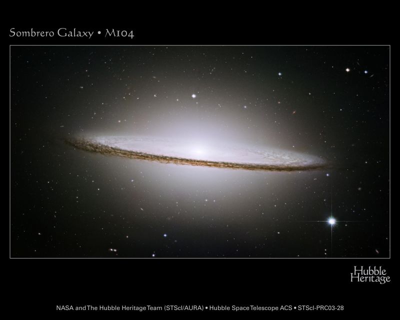 ![]() メキシコのソンブレロはこんな感じ。 もう少し低いものもありますよね。 ![]() (提供:NASA) ハッブル宇宙望遠鏡がとらえたソンブレロ銀河(M104)。 銀河を取り巻く暗黒帯の微細まで 鮮明に写し出しています。 ですけど、鮮明すぎて、 逆に、ソンブレロに見えなかったり。。。 ![]() (提供:国立天文台) 口径50cmカセグレン式望遠鏡(F12)によるM104。 これくらいのほうがソンブレロっぽいですか。。。 |