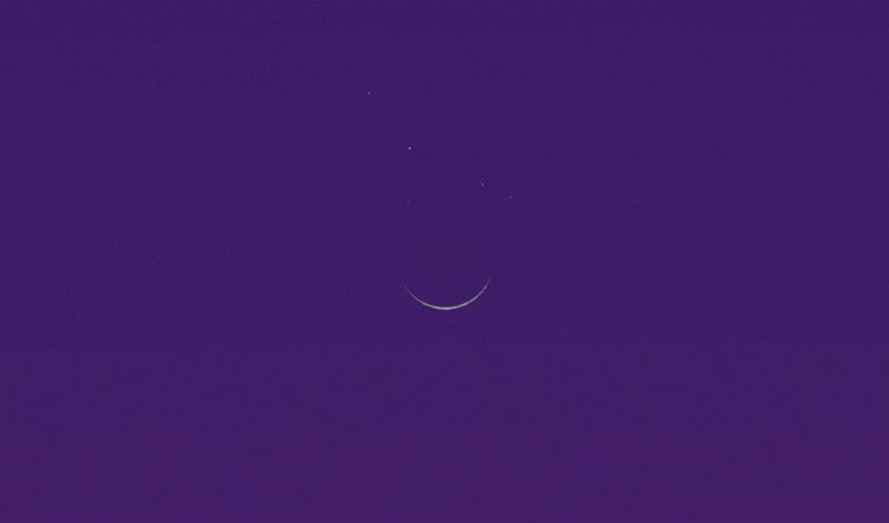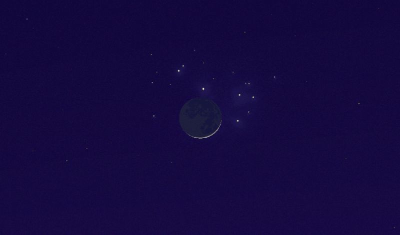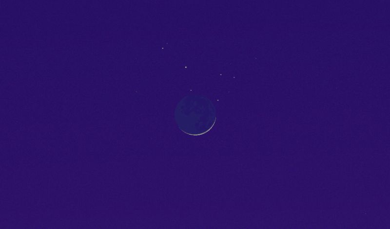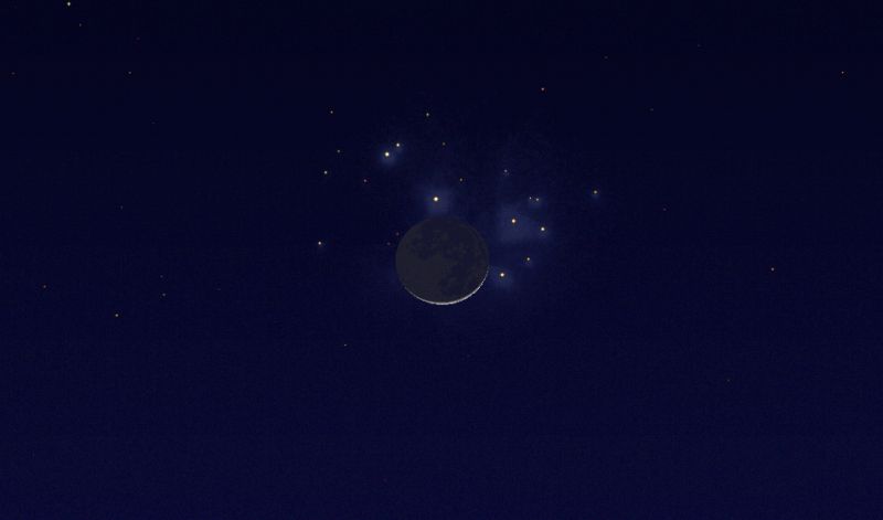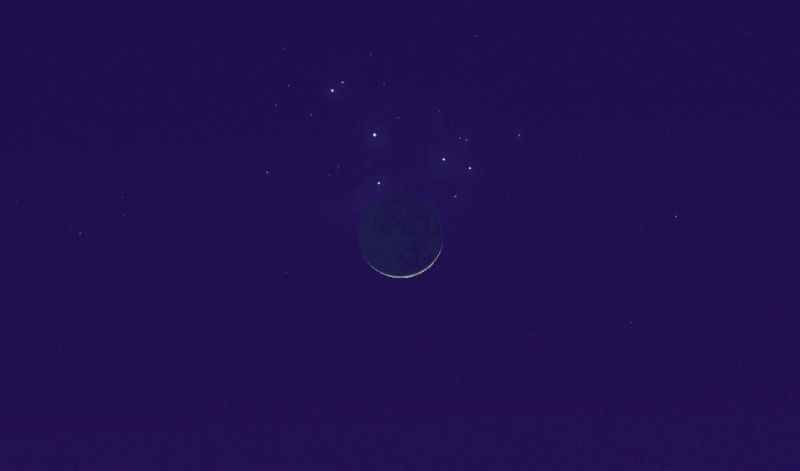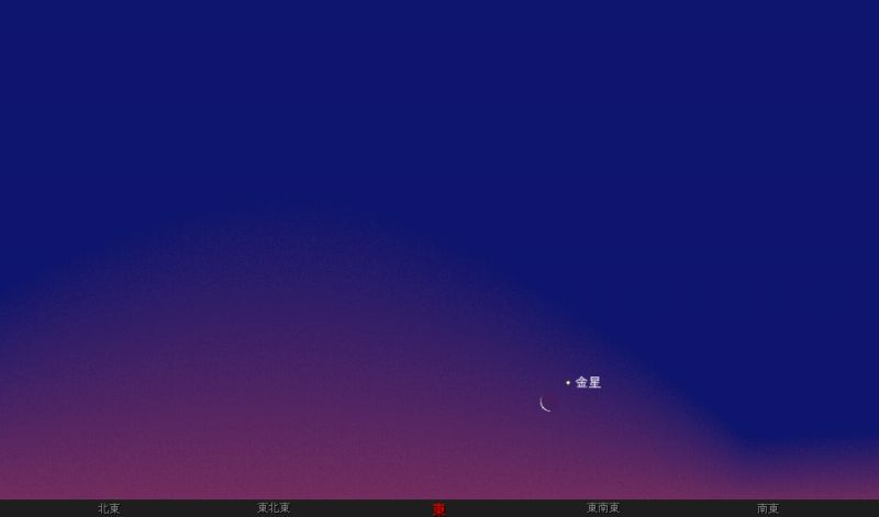 ![]() 2006年4月25日朝4時30分ごろの東の空です。 薄明がはじまっていますので、 星の輝きは、これからどんどん失われていきます。 そんな中、金星と細い月は、 自然と目をひいてしまいます。 ![]() 視野円は7度となっています。 7倍くらいの双眼鏡があると、 楽しみ方がぐっと増えますよね。 |