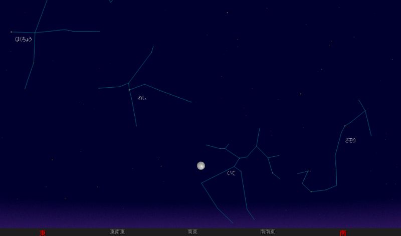 ![]() 【札幌市】 北緯45度24分 東経141度40分 7月15日夜20時50分ごろ ![]() 【東京都中央区】 北緯35度40分 東経139度46分 7月15日夜21時ごろ ![]() 【石垣市】 北緯24度20分 東経124度09分 7月15日夜22時ごろ 地域によって、さそり座の高さがだいぶ違いますよね。 なお、同じ日でも南中時間が異なるのは経度が違うためです。 |