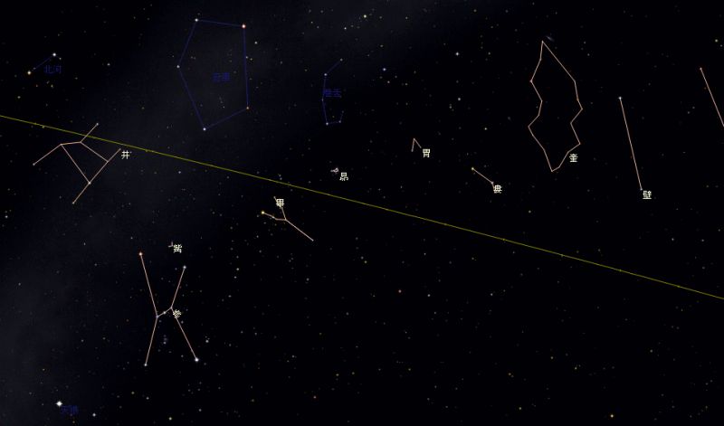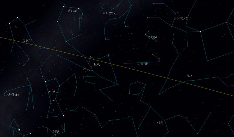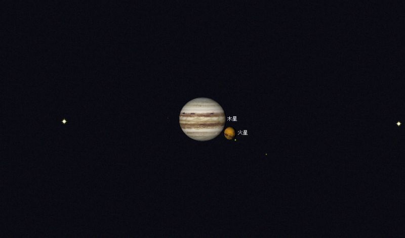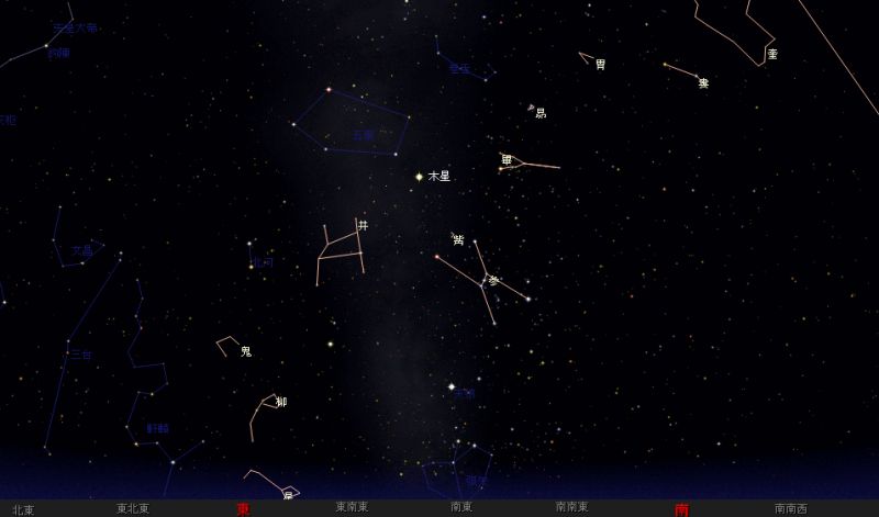 ![]() 平安時代末期の1170年9月13日3時ごろ。 (もちろん、当時は24時間ではありませんけど。。。) 参宿の形で分かるように、 オリオン座やおうし座が出ていますね。 ![]() 同時間、木星と火星の付近をアップにしてみました。 ![]() 3時10分ごろ。 火星が木星の前面を通過し始めました。 ![]() 3時30分ごろ。 ![]() 4時ごろ。 |