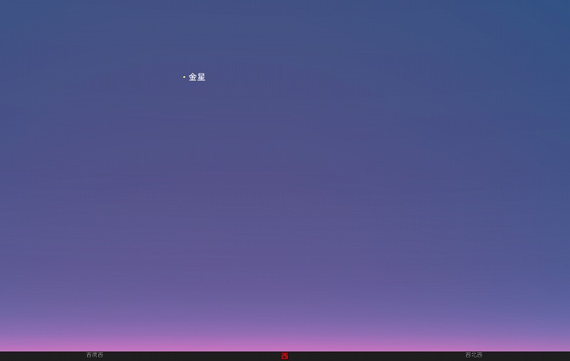 ![]() 2009年2月20日に金星(宵の明星)が最大光度。 以下、日没から30分ごとの様子。 ↓ ![]() ↓ ![]() ↓ ![]() ↓ ![]() |