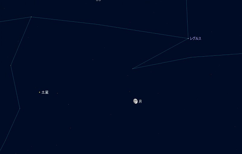 ![]() 2009年4月6日21時ごろ、身体を南に向けて上を向いた時の様子。 (月齢10.8) ![]() 月、土星、レグルス。 ![]() 2009年4月9日21時頃の南東の空。 (月齢13.8 満月) ![]() 満月とスピカ (視野円7度) |