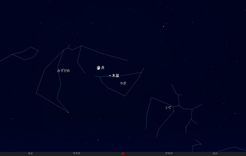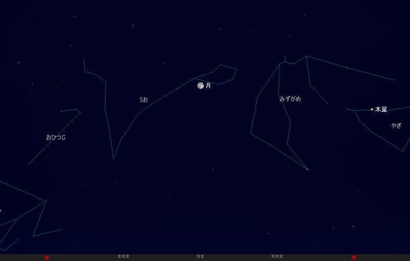 ![]() 2009年9月29日20時ごろの南の空。 (月齢10.7) ![]() 視野円7度 ![]() 翌30日20時ごろの南の空。 (月齢11.7) ![]() 視野円7度だと、 ちょっと窮屈ですね。。。 |