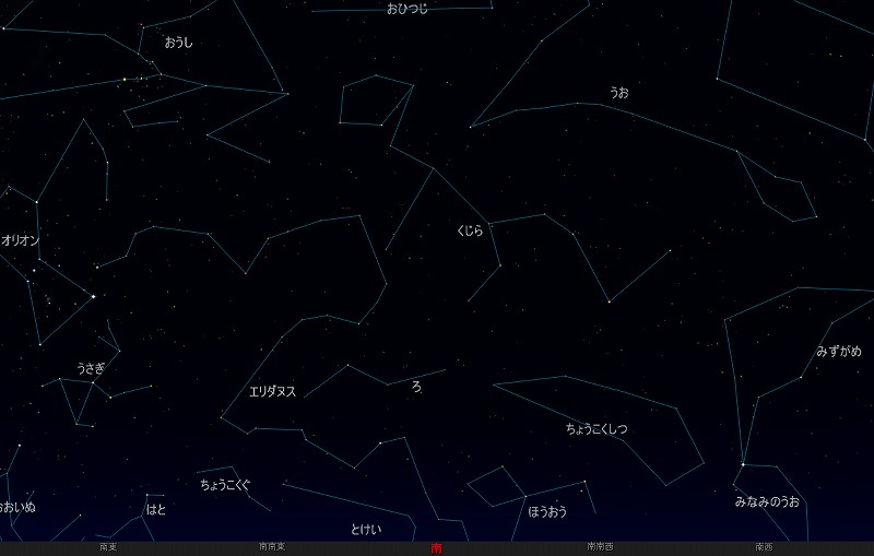 ![]() 11月下旬〜12月上旬21時30分ごろの南の空。 エリダヌス座に囲まれているのが、ろ座です。 ![]() つくったのは、 18世紀フランスの天文学者ラカーユ。 化学実験用の炉を模しています。 同じフランス人の化学者ラボアジェに捧げたとか。 ![]() 日本からでは逆さまになってしまいます。 南半球、特に南緯が高い地方ほど、 このように逆さまになりません。 |