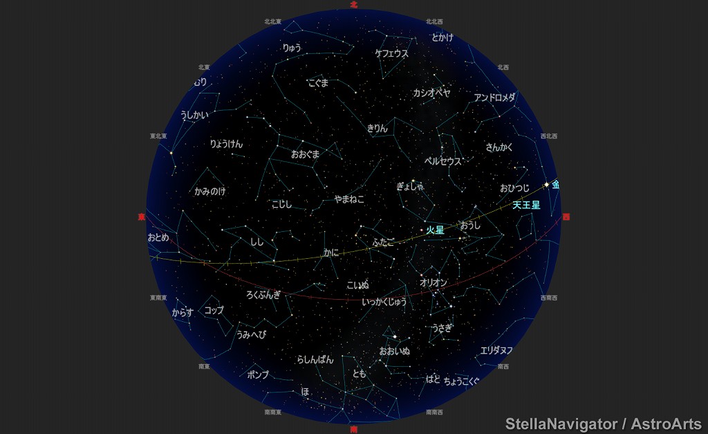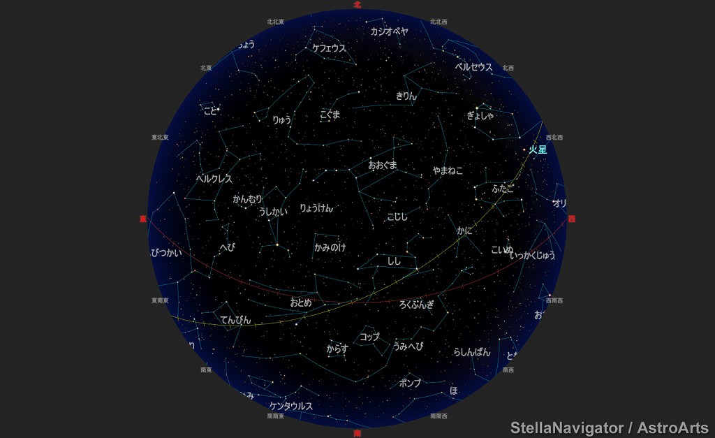 | このページの星図、シミュレーション図は、 株式会社アストロアーツのステラナビゲータを使用しています。 |