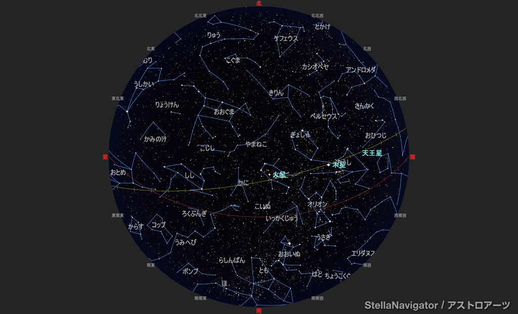 | このページの星図、シミュレーション図は、 株式会社アストロアーツのステラナビゲータを使用しています。 |