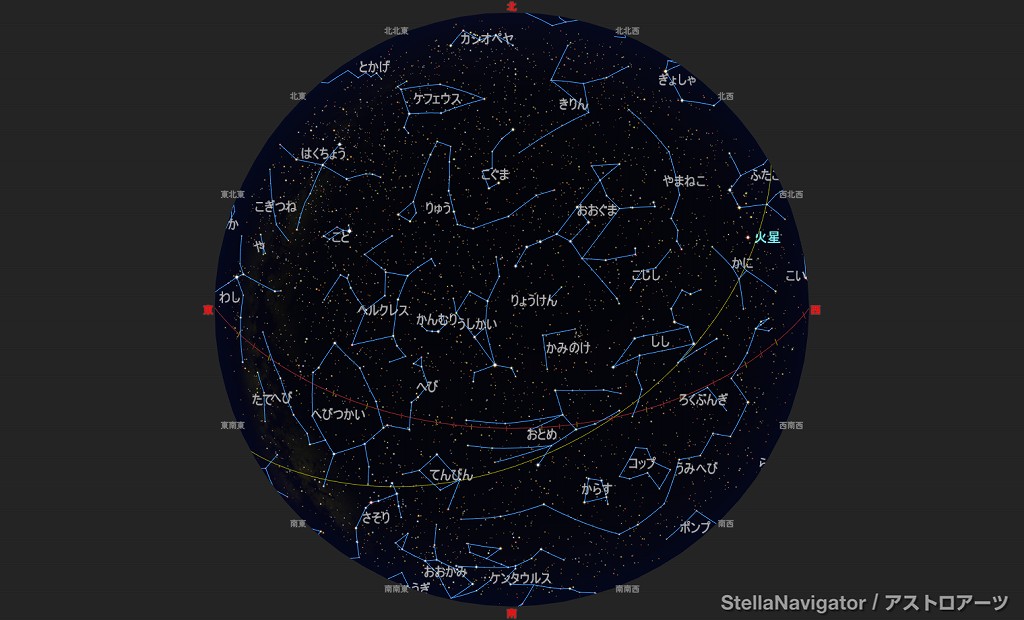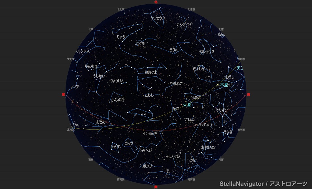 | このページの星図、シミュレーション図は、 株式会社アストロアーツのステラナビゲータを使用しています。 |