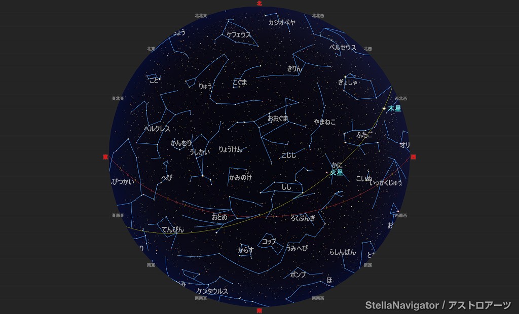 | このページの星図、シミュレーション図は、 株式会社アストロアーツのステラナビゲータを使用しています。 |