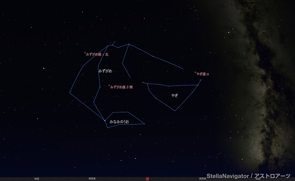 | ★彡〜☆彡〜★彡〜☆彡〜★彡〜☆彡〜★彡〜☆彡〜★彡〜☆彡〜★彡〜☆彡 今宵はどんな星空が見えるでしょう。。。 ☆彡 流 れ 星 か ら の 贈 り 物 ★彡 第1031号 2025年7月28日発行 ☆彡〜★彡〜☆彡〜★彡〜☆彡〜★彡〜☆彡〜★彡〜☆彡〜★彡〜☆彡〜★彡 こんにちは。 「流れ星」の鈴木です。 ご愛読いただいている皆さま、 新しく読者登録していただいた方、 本当にありがとうございます。 それでは、今週もよろしくお願いします☆彡 ★彡〜☆彡〜★彡〜☆彡〜★彡〜☆彡〜★彡〜☆彡〜★彡〜☆彡〜★彡〜☆彡 ★今週の話題 ☆彡〜★彡〜☆彡〜★彡〜☆彡〜★彡〜☆彡〜★彡〜☆彡〜★彡〜☆彡〜★彡 ★1.月が火星(28日)、スピカ(31日)と並ぶ ★2.ペルセ群の前哨戦 4つの流星群が活動中 ★3.編集後記 ★彡〜☆彡〜★彡〜☆彡〜★彡〜☆彡〜★彡〜☆彡〜★彡〜☆彡〜★彡〜☆彡 ★1.月が火星(28日)、スピカ(31日)と並ぶ ☆彡〜★彡〜☆彡〜★彡〜☆彡〜★彡〜☆彡〜★彡〜☆彡〜★彡〜☆彡〜★彡 25日に新月を迎えた月が、 夕方の西の空に 見え始めてきました。 月は今週、 徐々に太くなりながら、 しし座、おとめ座、てんびん座を 移動していきます。 本日28日には、 日没後の西の低空にて、 三日月の姿で 火星と並びます。 月末31日には、 南西の空で おとめ座1等星スピカと 並びます。 スピカとのツーショットも 今シーズンは、 今回で見納めです。 28日の三日月と火星、 31日の月とスピカの様子はコチラ。 http://nagarebosi-kirari.com/mailmaga3/20250721.html#02 ★彡〜☆彡〜★彡〜☆彡〜★彡〜☆彡〜★彡〜☆彡〜★彡〜☆彡〜★彡〜☆彡 ★2.ペルセ群の前哨戦 4つの流星群が活動中 ☆彡〜★彡〜☆彡〜★彡〜☆彡〜★彡〜☆彡〜★彡〜☆彡〜★彡〜☆彡〜★彡 夏の流星群といえば、 3大流星群の1つでもある 「ペルセウス座流星群」ですよね。 ペルセ群ほど派手ではないものの、 7月下旬から8月上旬に極大(ピーク)を迎える 流星群が4つあります。 <みなみのうお座流星群> 活動:7月15日〜8月10日 極大:7月28日ごろ <みずがめ座δ(デルタ)流星群(南群)> 活動:7月12日〜8月19日 極大:7月28日ごろ <みずがめ座ι(イオタ)流星群(北群)> 活動:7月25日〜8月15日 極大:8月4日ごろ <やぎ座α(アルファ)流星群> 活動:7月3日〜8月15日 極大:7月30日ごろ この4つの中で最も活発なのは、 みずがめ座δ流星群です。 活発とはいっても、 ピーク時で1時間に20個ほど。 他の流星群はそれほど期待はできません。。。 従って、見えた流星が、 流星群由来なのか、 単なる散在流星なのかを 判断するのも難しいでしょう。 やぎ座、みずがめ座、みなみのうお座は、 7月下旬〜8月上旬には、 深夜1〜2時ごろ、 ちょうど南中します。 その時間には、 東の空でペルセウス座も昇っています。 ペルセ群は、 既に活動期に入っているので、 思いがけず、 ペルセ群の流星が見られる可能性もあります。 流星群とはいえ、 流星がバンバン飛ぶことはないものの、 普段よりは流星が飛ぶ確率は高くなっています。 夏休みで山や海に行かれる方は、 夏の夜長に星空を見上げていると、 イイことがあるかもしれません。 夏でも夜はけっこう冷える場所もあるので、 虫対策と服の用意を怠りなく。 7月下旬1〜2時ごろのやぎ座、みずがめ座、 および、各流星群の放射点の位置などはコチラ。 http://nagarebosi-kirari.com/mailmaga3/20250728.html#02 ★彡〜☆彡〜★彡〜☆彡〜★彡〜☆彡〜★彡〜☆彡〜★彡〜☆彡〜★彡〜☆彡 ★3.編集後記 ☆彡〜★彡〜☆彡〜★彡〜☆彡〜★彡〜☆彡〜★彡〜☆彡〜★彡〜☆彡〜★彡 夏をあきらめて 違う意味で。。。 それでは、また来週にお会いしましょう。 ↓このメルマガの全バックナンバーはコチラです。 http://nagarebosi-kirari.com/index1-6.html |