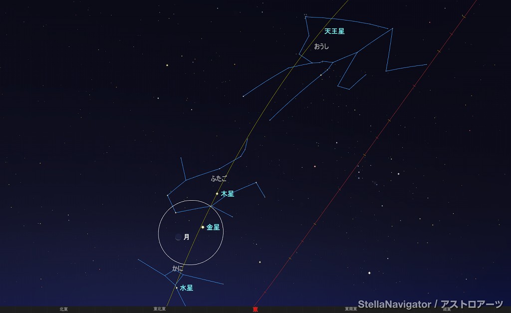 | このページの星図、シミュレーション図は、 株式会社アストロアーツのステラナビゲータを使用しています。 |