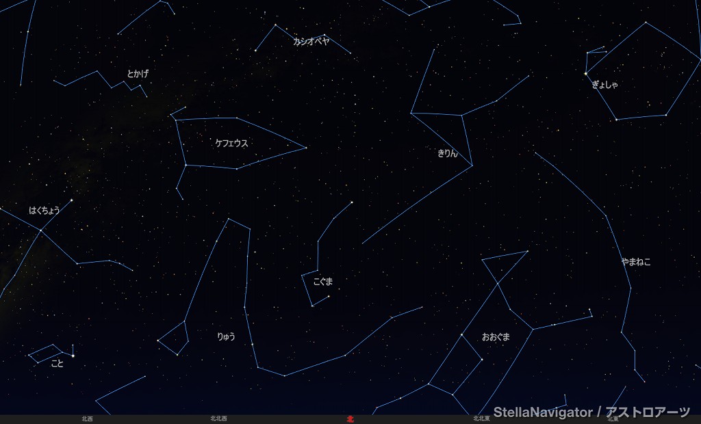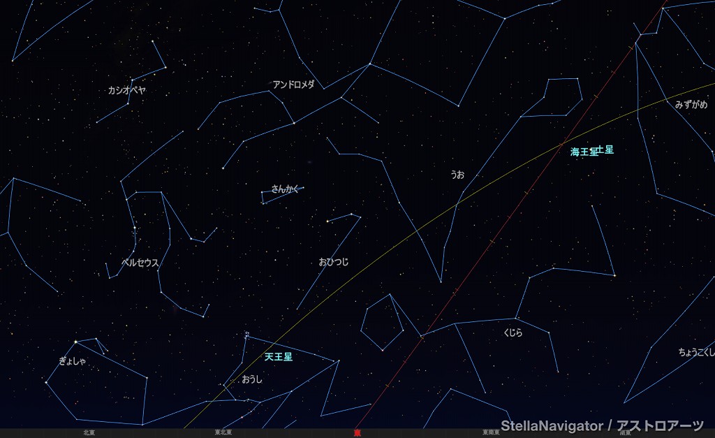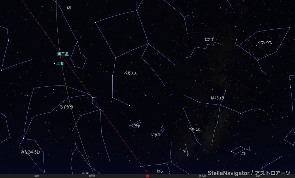 ![]() 2025年10月の星空の様子 (黄線:黄道、赤線:天の赤道) 南の空 上旬21時ごろ 中旬20時ごろ 下旬19時ごろ (以下、同様) ![]() 南〜天頂 ![]() 東の空 ![]() 北の空 ![]() 西の空 ![]() 星座早見 (南が下) ![]() 2025年10月の星空の様子 (黄線:黄道、赤線:天の赤道) 南の空 上旬1時ごろ 中旬0時ごろ 下旬23時ごろ (以下、同様) ![]() 南〜天頂 ![]() 東の空 ![]() 北の空 ![]() 西の空 ![]() 星座早見 (南が下) |