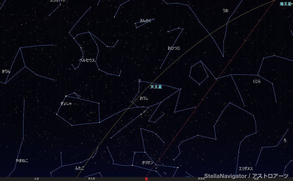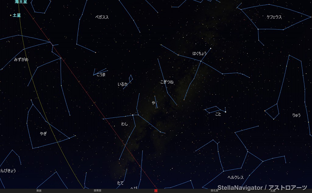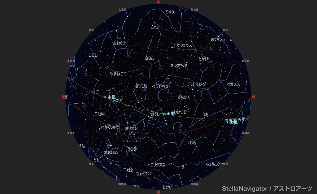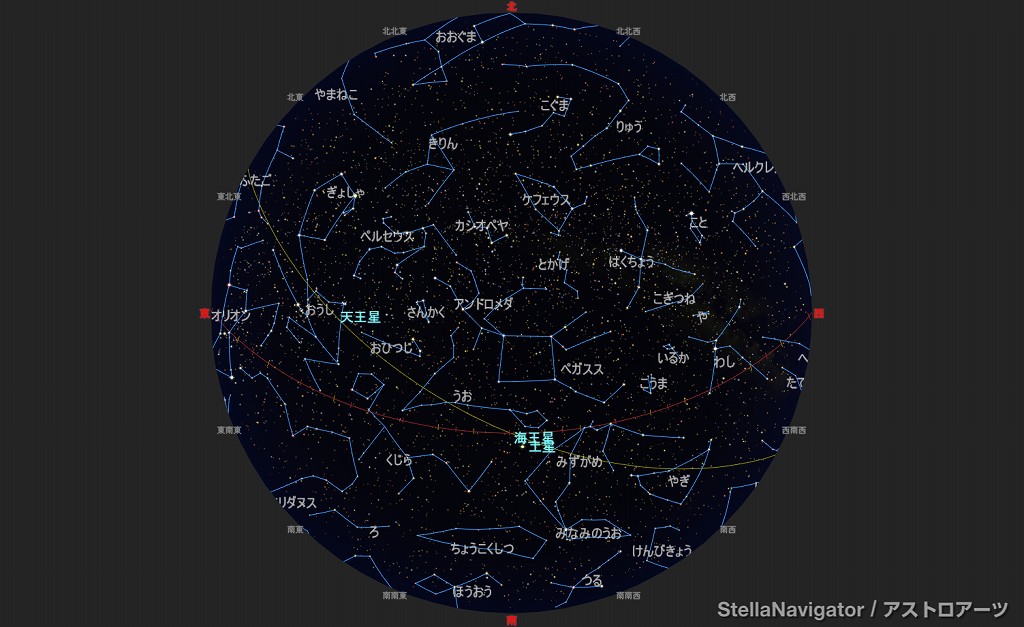 ![]() 2025年11月の星空の様子 (黄線:黄道、赤線:天の赤道) 南の空 上旬21時ごろ 中旬20時ごろ 下旬19時ごろ (以下、同様) ![]() 南〜天頂 ![]() 東の空 ![]() 北の空 ![]() 西の空 ![]() 星座早見 (南が下) ![]() 2025年11月の星空の様子 (黄線:黄道、赤線:天の赤道) 南の空 上旬1時ごろ 中旬0時ごろ 下旬23時ごろ (以下、同様) ![]() 南〜天頂 ![]() 東の空 ![]() 北の空 ![]() 西の空 ![]() 星座早見 (南が下) |